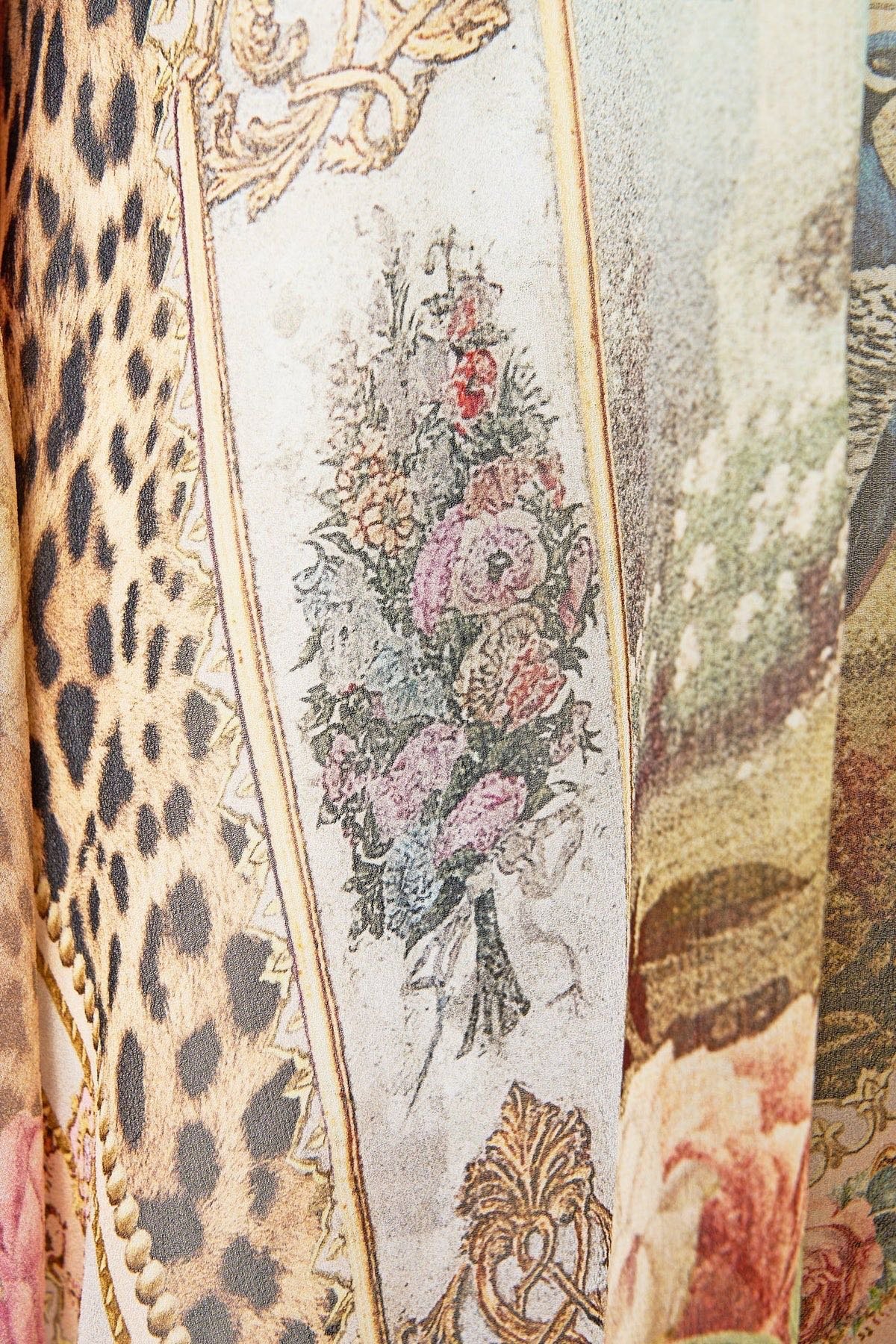 VGH French Court Style Retro Elegant Dress, Ruffle Silk Printed Loose Luxury Temperament Long Dress